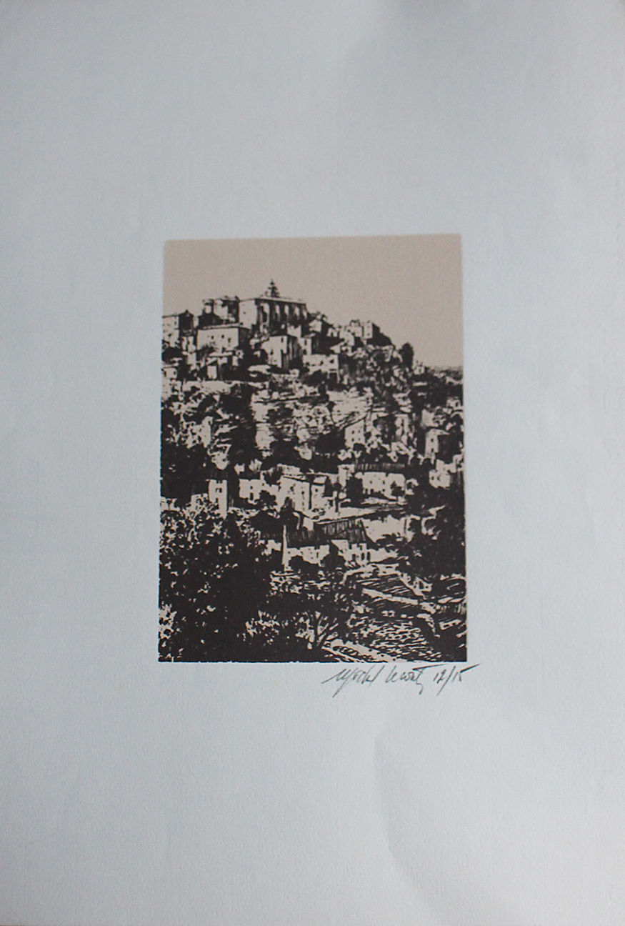 Litho de Michel Leconte - Village de GORDES dans le Luberon