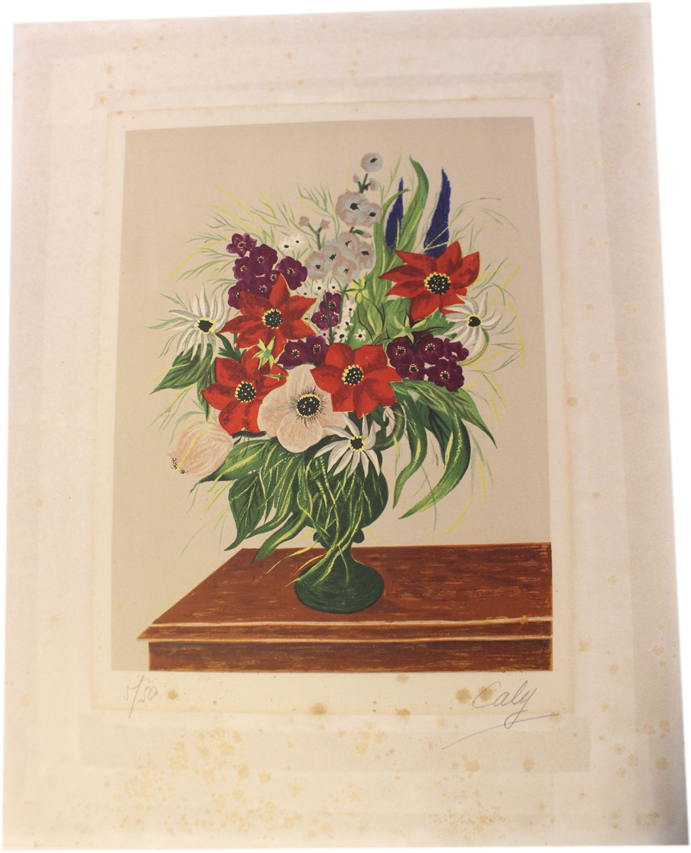 Lithographie de Odette CALY "Bouquet dans un vase" n°5/50